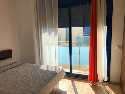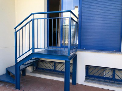 Uno de los dormitorios dispone de balcón privado con una escalera de caracol que da acceso al gran solárium.