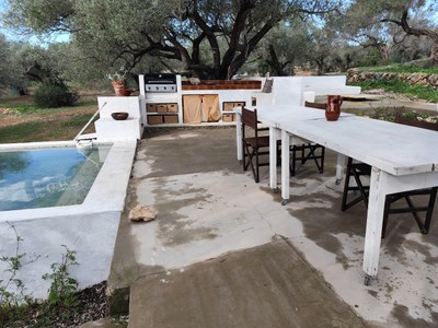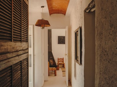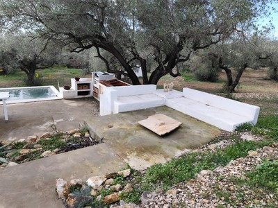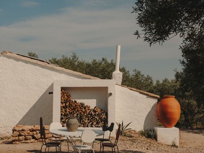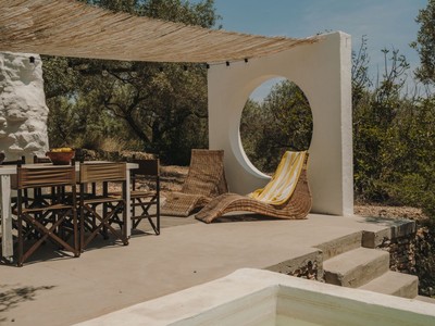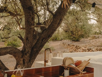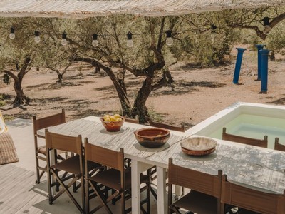 A lexterior, la màgia continua. El tradicional rafal aporta ombra i caràcter, convertint-se en el lloc ideal per a llargues sobretaules, lectures tranquilles o simplement contemplar el paisatge. I com a joia de la finca, una piscina privada on refrescar-te els dies assolellats, envoltat dabsoluta intimitat.