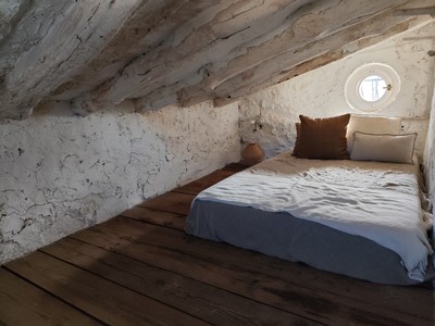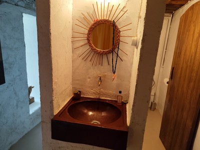 Lhabitatge, destil rústic i molt acollidor, funciona amb llum solar i aigua de cisterna, cosa que en reforça el caràcter sostenible i la connexió amb lentorn.