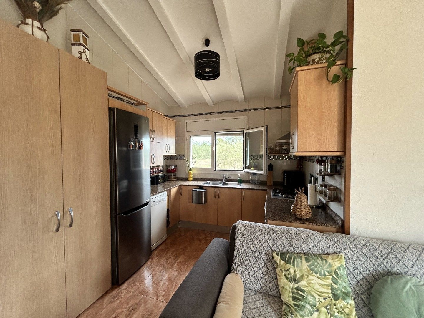 Como complemento ideal, la propiedad cuenta con una encantadora casita de madera de unos 25 m², totalmente equipada y pensada para acoger a familiares o invitados con total independencia. En su interior encontramos dos dormitorios —uno con cama de matrimonio y otro con literas—, una cocina funcional, un acogedor salón y un baño completo. Un pequeño oasis dentro del oasis.