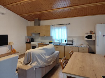 El corazón de la casa es su cocina americana totalmente equipada, integrada en un espacio abierto que favorece la convivencia y la entrada de luz natural, creando un ambiente amplio y armonioso. Desde aquí se accede a un encantador porche con terraza, el lugar perfecto para disfrutar de comidas al aire libre, relajarse al atardecer o compartir momentos inolvidables con familia y amigos.