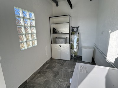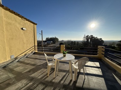 La cocina es independiente, moderna y completamente equipada, con acceso directo a una amplia terraza con impresionantes vistas al Delta del Ebro, un espacio perfecto para disfrutar del aire libre, organizar comidas, o relajarse contemplando el paisaje. En la terraza se encuentra además un cuarto lavadero de gran tamaño, ideal como zona de almacenamiento o lavandería.