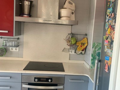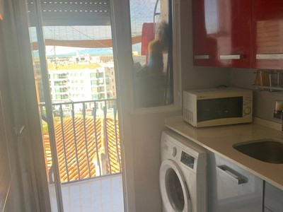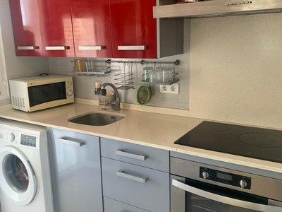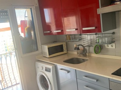 Cocina independiente, moderna y totalmente equipada, con salida directa a un balcón exterior.